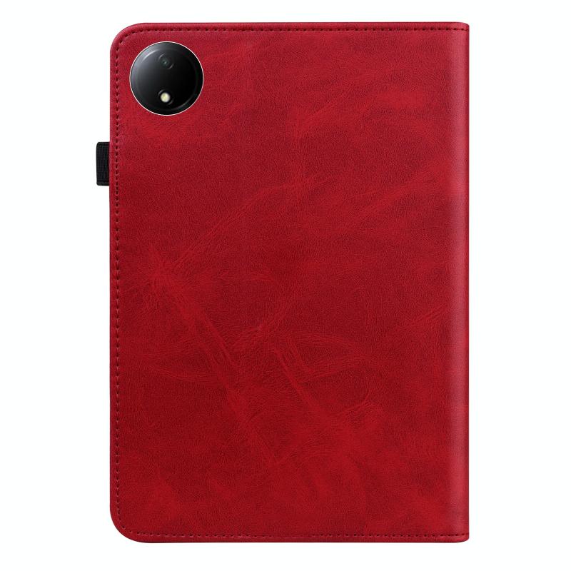 For Xiaomi Redmi Pad SE 8.7 Solid Color Stripe Embossed Leather Tablet Case(Red)