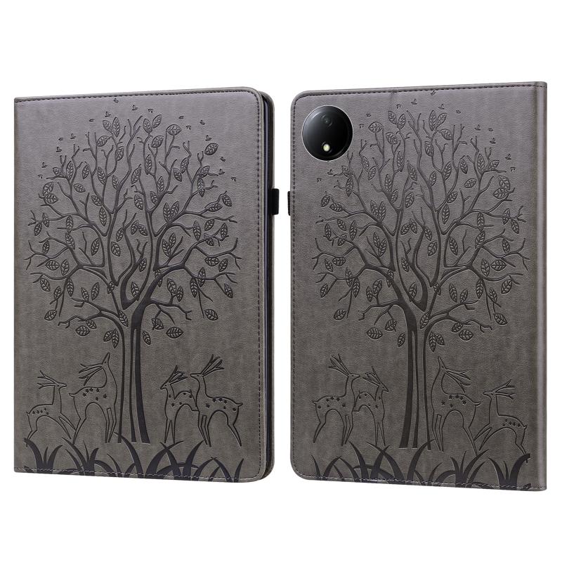 For Xiaomi Redmi Pad SE 8.7 Tree & Deer Embossed Leather Tablet Case(Grey)