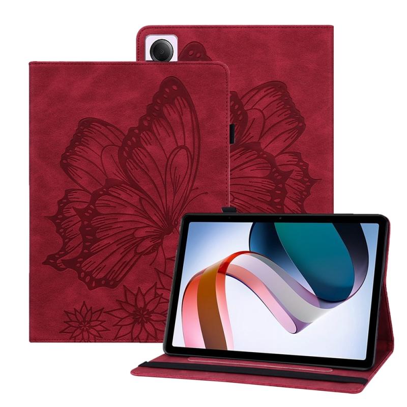 For Xiaomi Redmi Pad SE Big Butterfly Embossed Leather Tablet Case(Red)