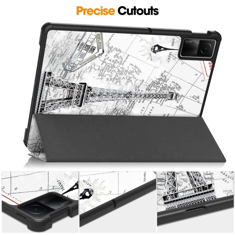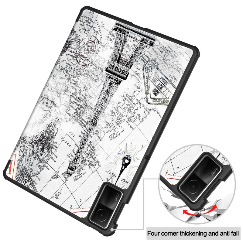 For Xiaomi Redmi Pad SE Custer Painted 3-Fold Holder Smart Leather Tablet Case(Retro Tower)