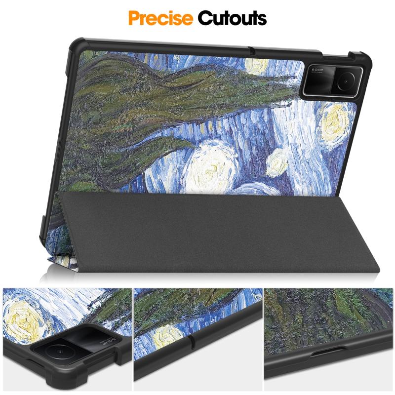 For Xiaomi Redmi Pad SE Custer Painted 3-Fold Holder Smart Leather Tablet Case(Starry Sky)
