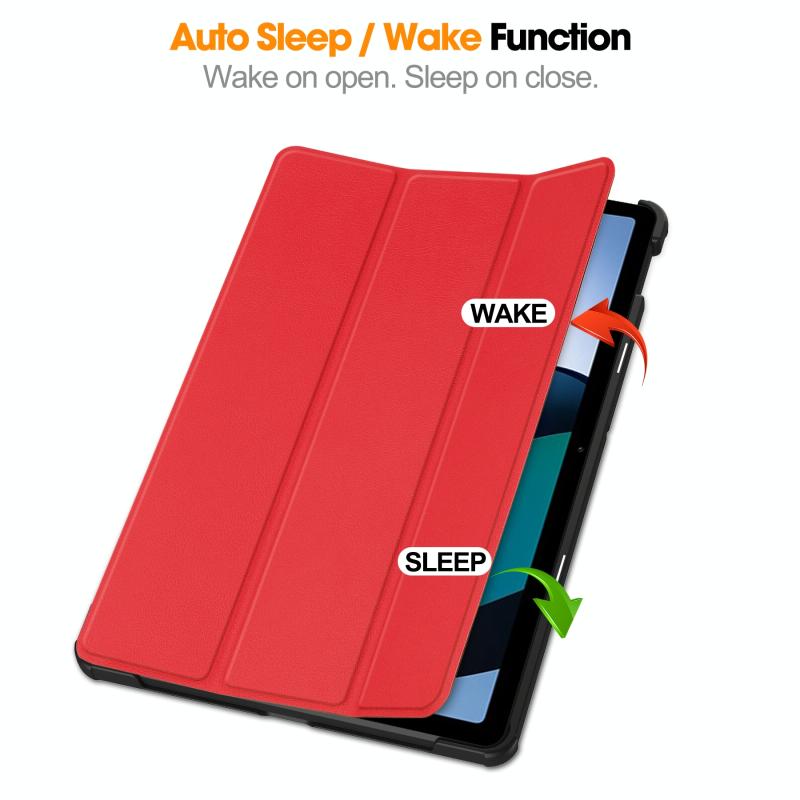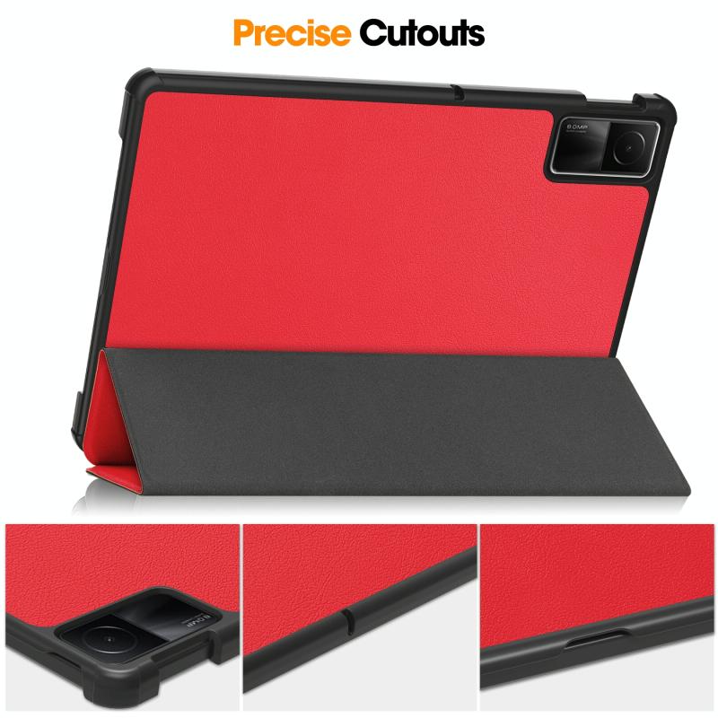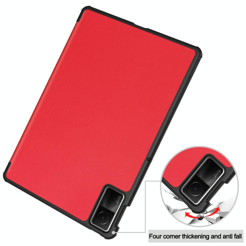 For Xiaomi Redmi Pad SE Custer Pure Color 3-Fold Holder Leather Tablet Case(Red)