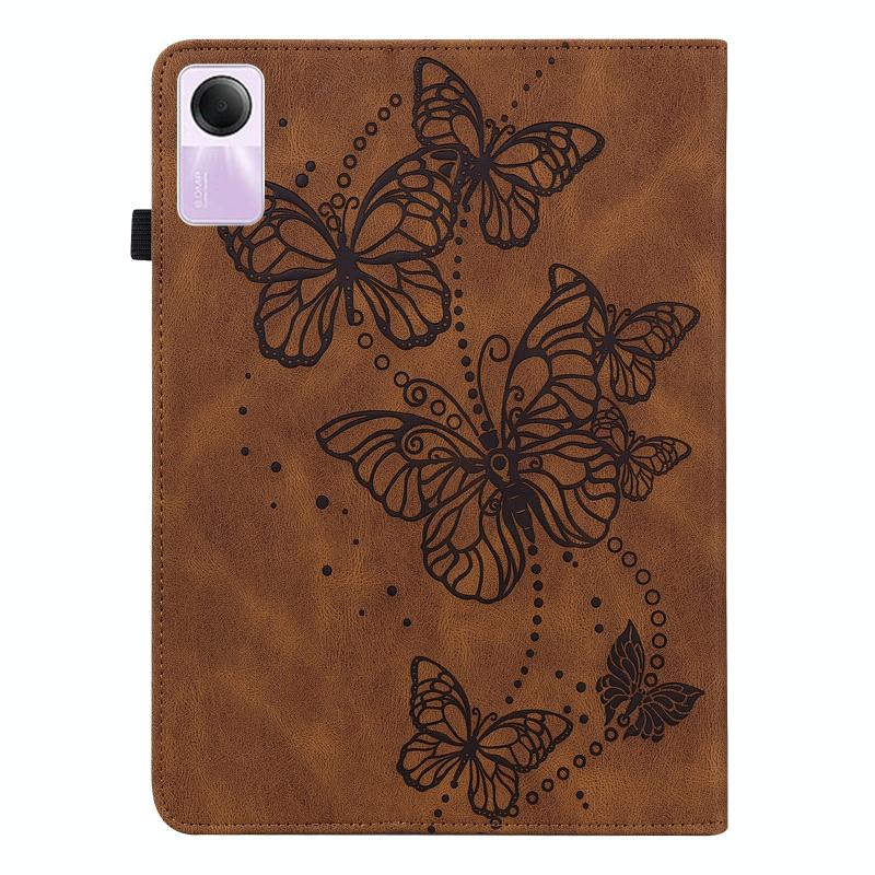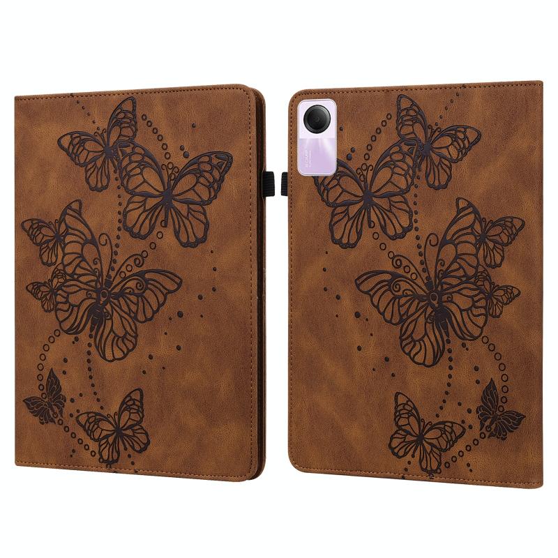 For Xiaomi Redmi Pad SE Embossed Butterfly Pattern Horizontal Flip Leather Tablet Case(Brown)