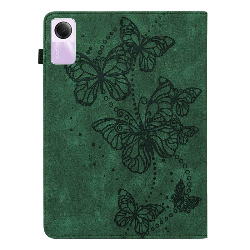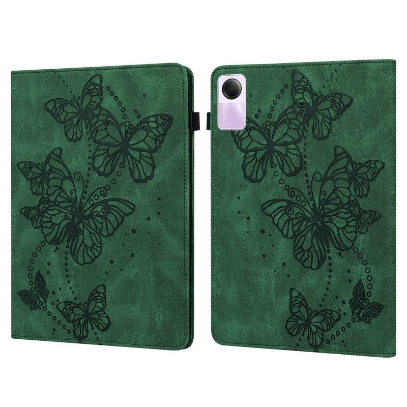For Xiaomi Redmi Pad SE Embossed Butterfly Pattern Horizontal Flip Leather Tablet Case(Green)