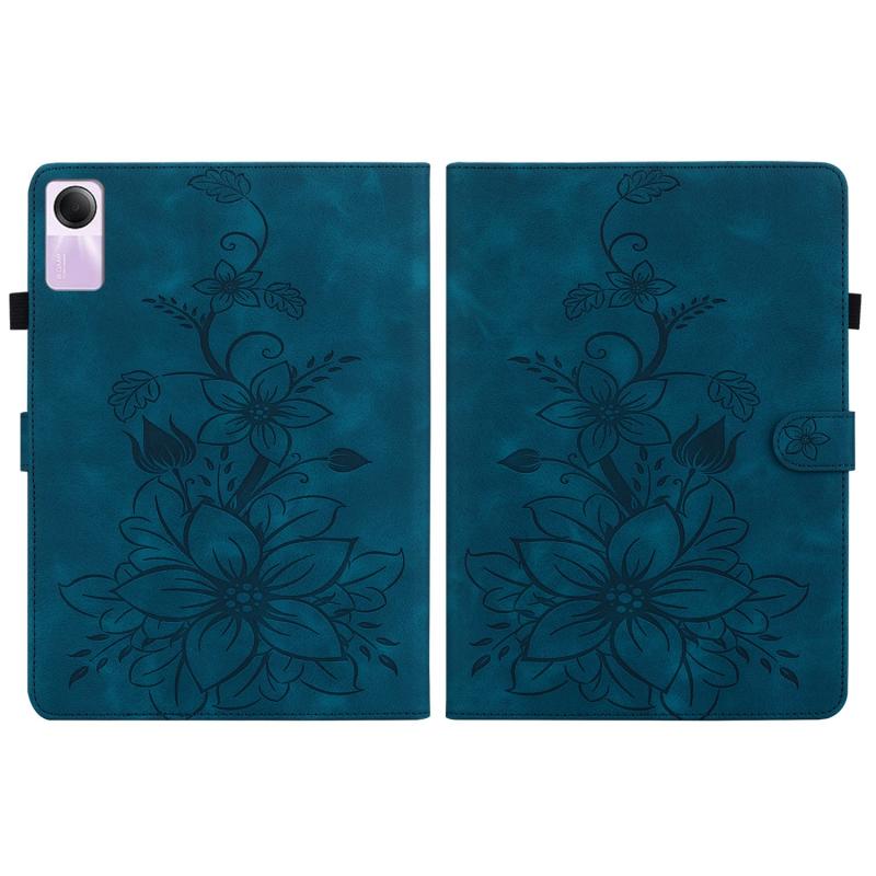 For Xiaomi Redmi Pad SE Lily Embossed Leather Tablet Case(Dark Blue)