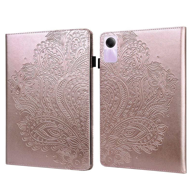 For Xiaomi Redmi Pad SE Peacock Embossed Pattern Leather Tablet Case(Rose Gold)