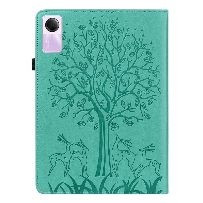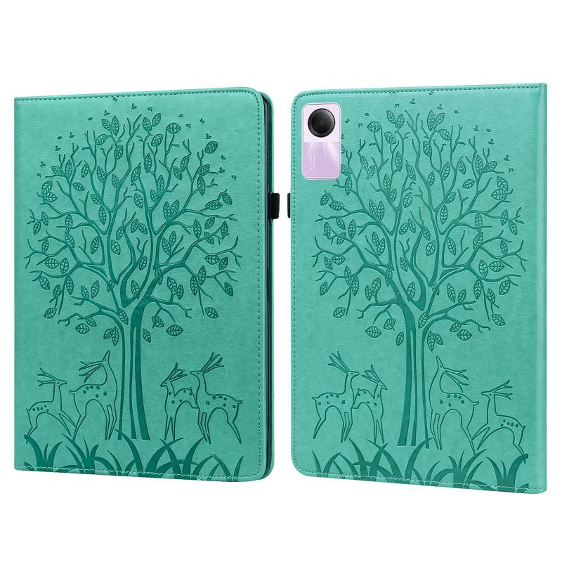 For Xiaomi Redmi Pad SE Tree & Deer Embossed Leather Tablet Case(Green)