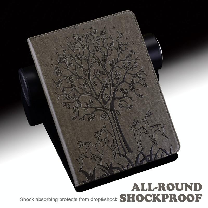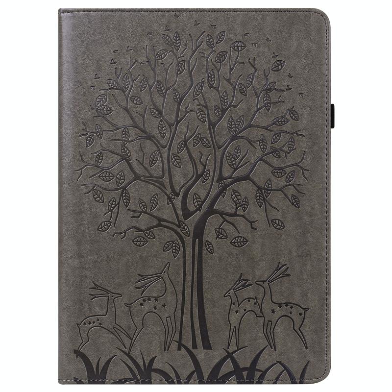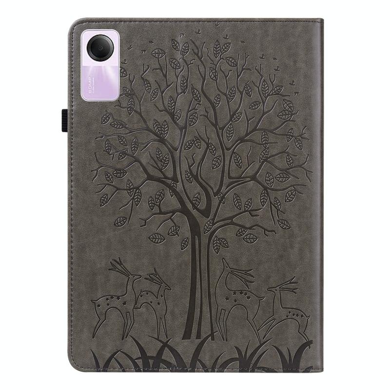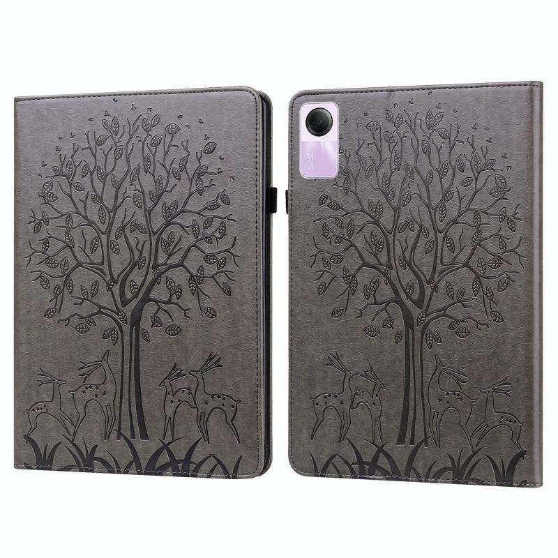 For Xiaomi Redmi Pad SE Tree & Deer Embossed Leather Tablet Case(Grey)