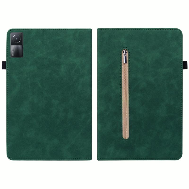 For Xiaomi Redmi Pad Skin Feel Solid Color Zipper Leather Tablet Case(Green)