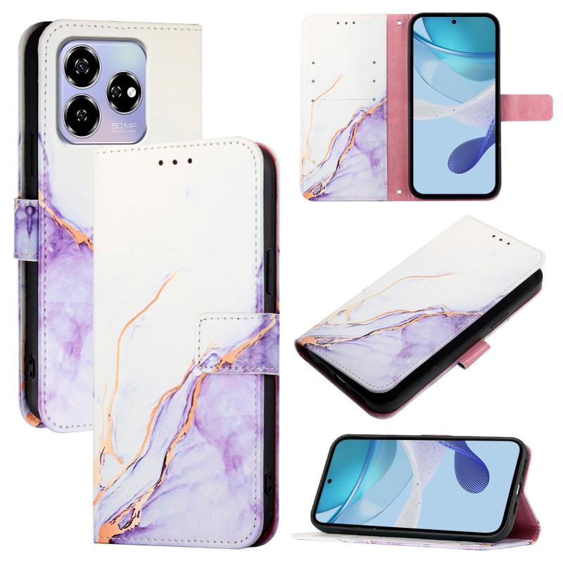 For ZTE Axon 60 / Blade V60 PT003 Marble Pattern Flip Leather Phone Case(White Purple)