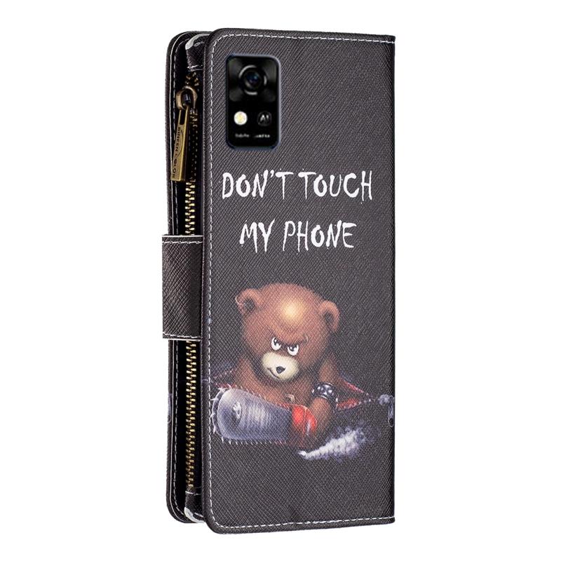 For ZTE Blade A31 Colored Drawing Pattern Zipper Horizontal Flip Phone Leather Case(Bear)
