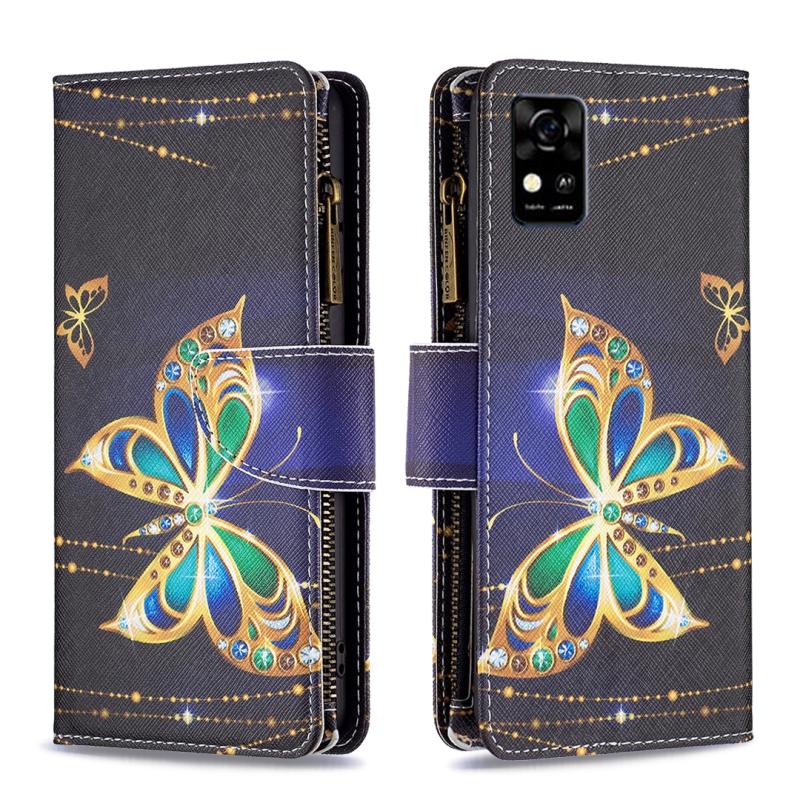 For ZTE Blade A31 Colored Drawing Pattern Zipper Horizontal Flip Phone Leather Case(Big Butterfly)