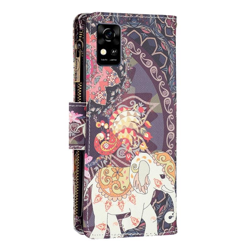 For ZTE Blade A31 Colored Drawing Pattern Zipper Horizontal Flip Phone Leather Case(Flower Elephants)