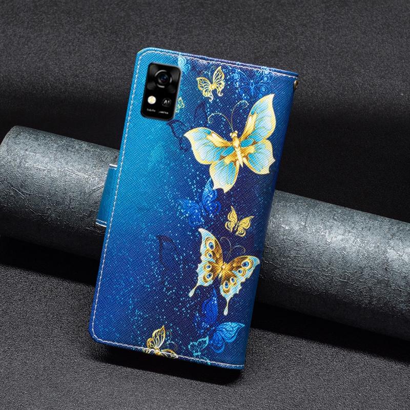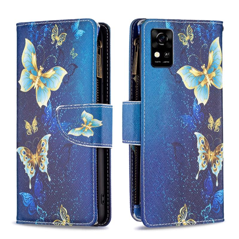 For ZTE Blade A31 Colored Drawing Pattern Zipper Horizontal Flip Phone Leather Case(Gold Butterfly)