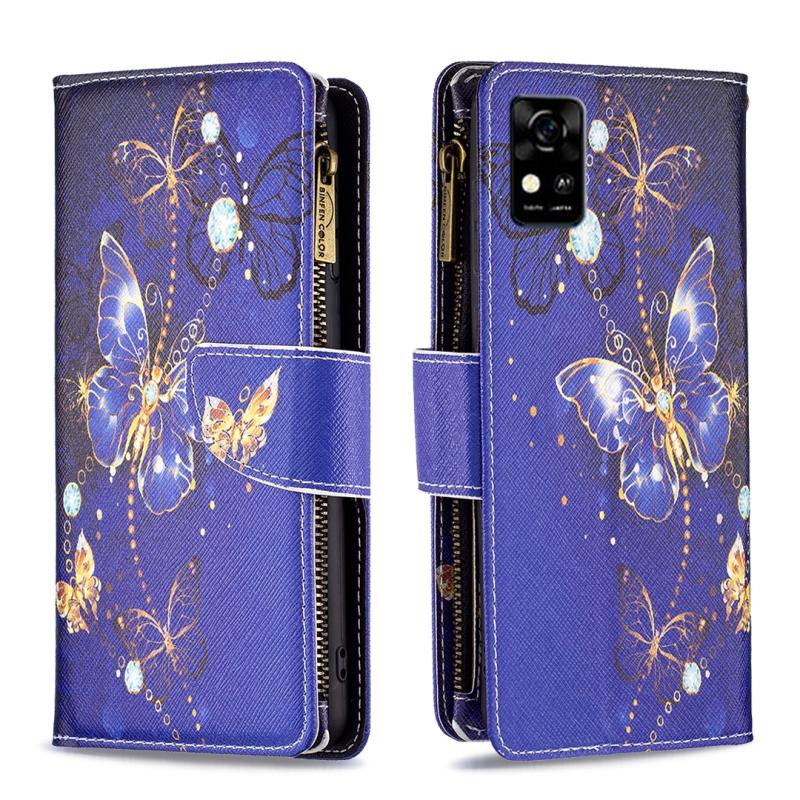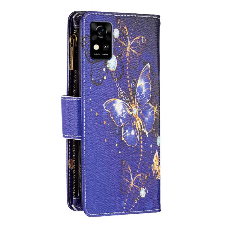 For ZTE Blade A31 Colored Drawing Pattern Zipper Horizontal Flip Phone Leather Case(Purple Butterfly)