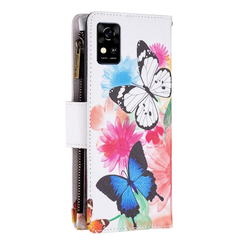 For ZTE Blade A31 Colored Drawing Pattern Zipper Horizontal Flip Phone Leather Case(Two Butterflies)
