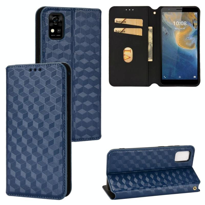 For ZTE Blade A31 Cubic Grid Texture Flip Leather Phone Case(Blue)