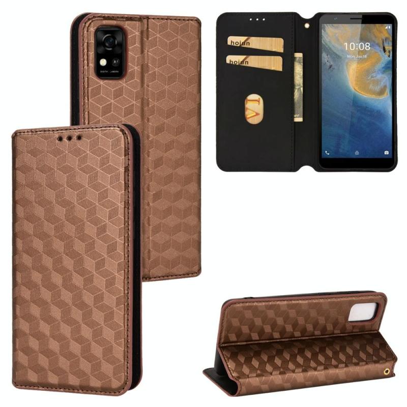 For ZTE Blade A31 Cubic Grid Texture Flip Leather Phone Case(Brown)