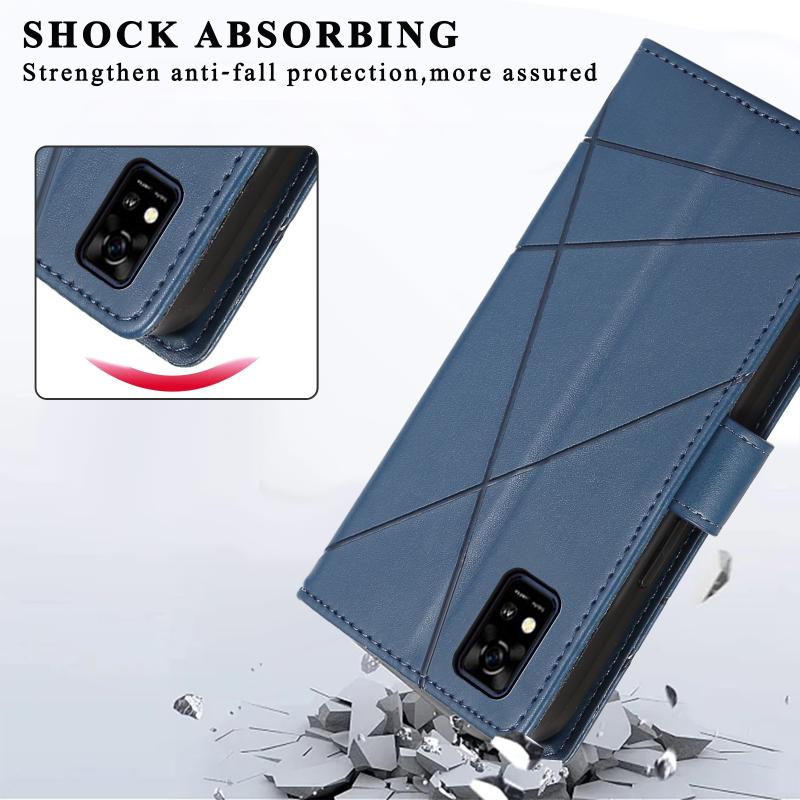 For ZTE Blade A31 PU Genuine Leather Texture Embossed Line Phone Case(Blue)