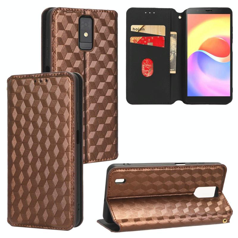 For ZTE Blade A32 Cubic Grid Texture Flip Leather Phone Case(Brown)