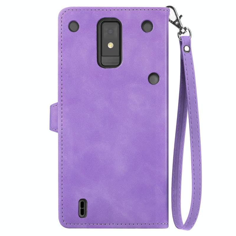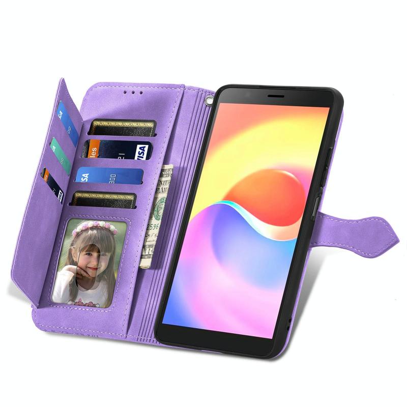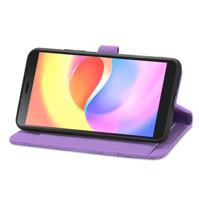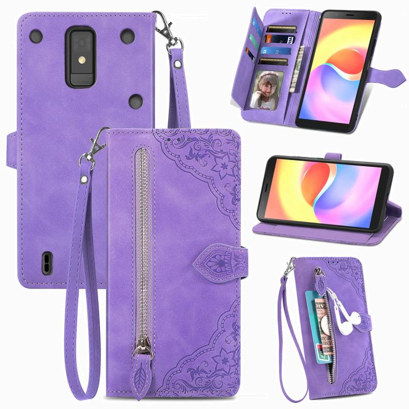 For ZTE Blade A32 Embossed Flower Zipper Leather Phone Case(Purple)
