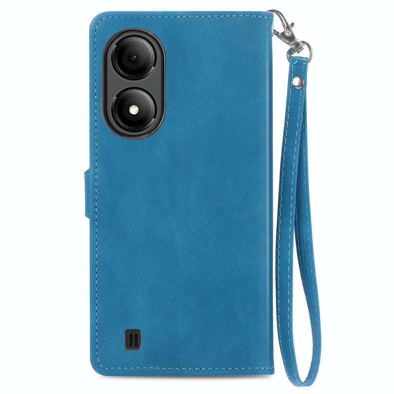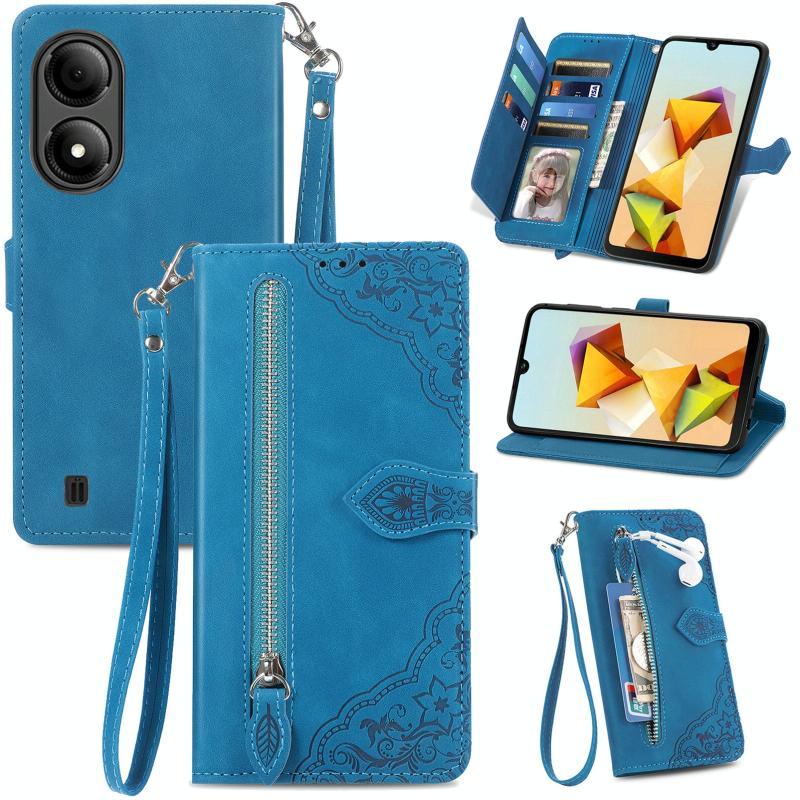 For ZTE Blade A33S Embossed Flower Zipper Leather Phone Case(Blue)