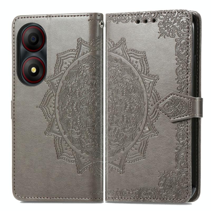 For ZTE Blade A34 Mandala Flower Embossed Leather Phone Case(Gray)