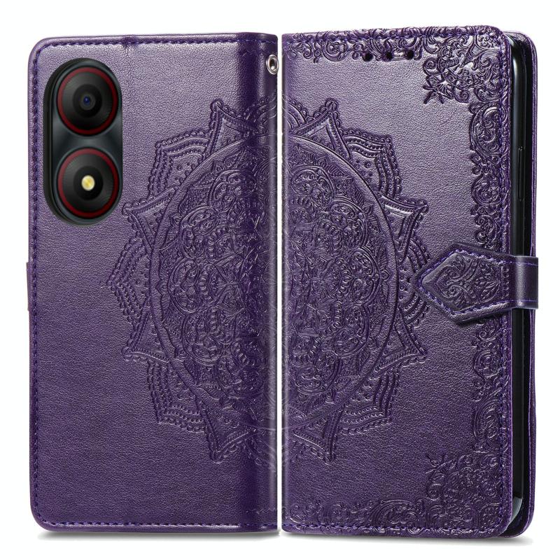 For ZTE Blade A34 Mandala Flower Embossed Leather Phone Case(Purple)
