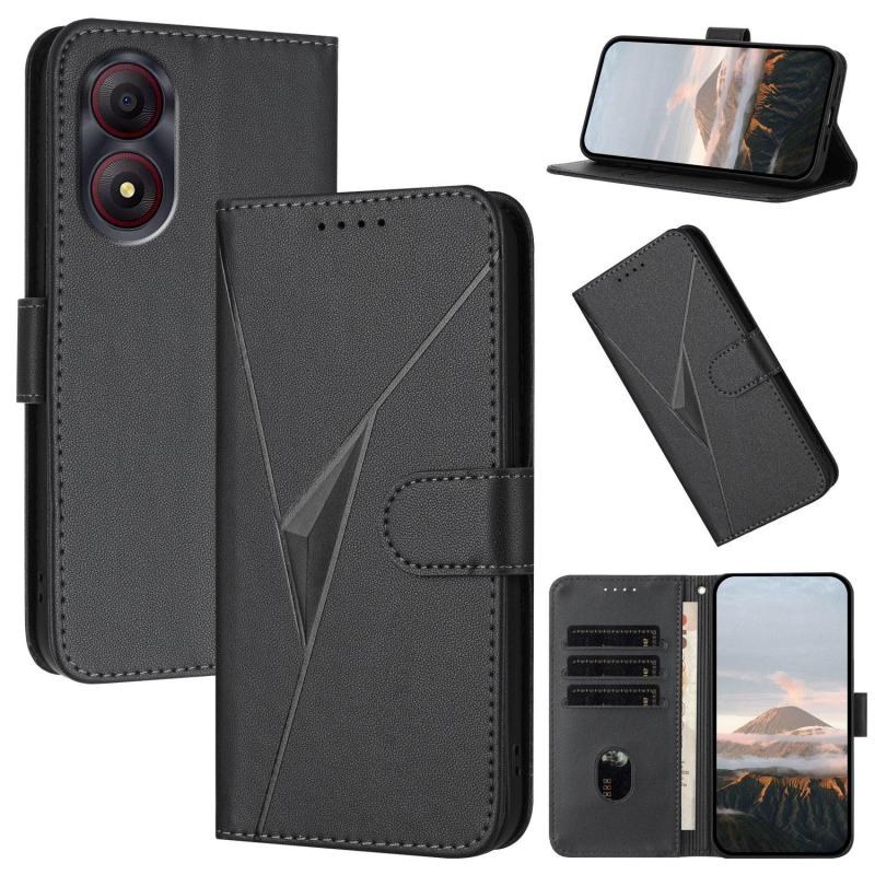 For ZTE Blade A34 Triangle Pattern Buckle Clasp Leather Phone Case(Black)