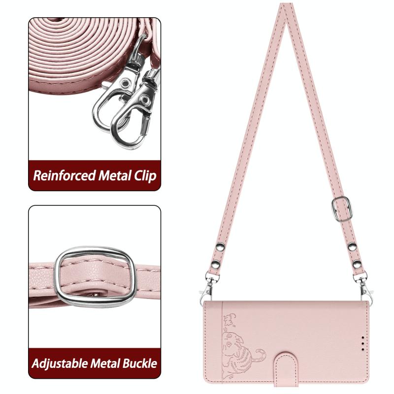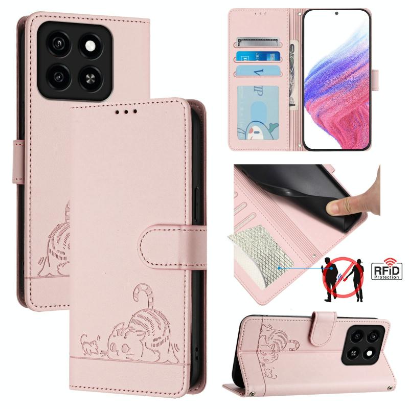 For ZTE Blade A35 / A55 Cat Rat Embossed Pattern RFID Leather Phone Case with Lanyard(Pink)