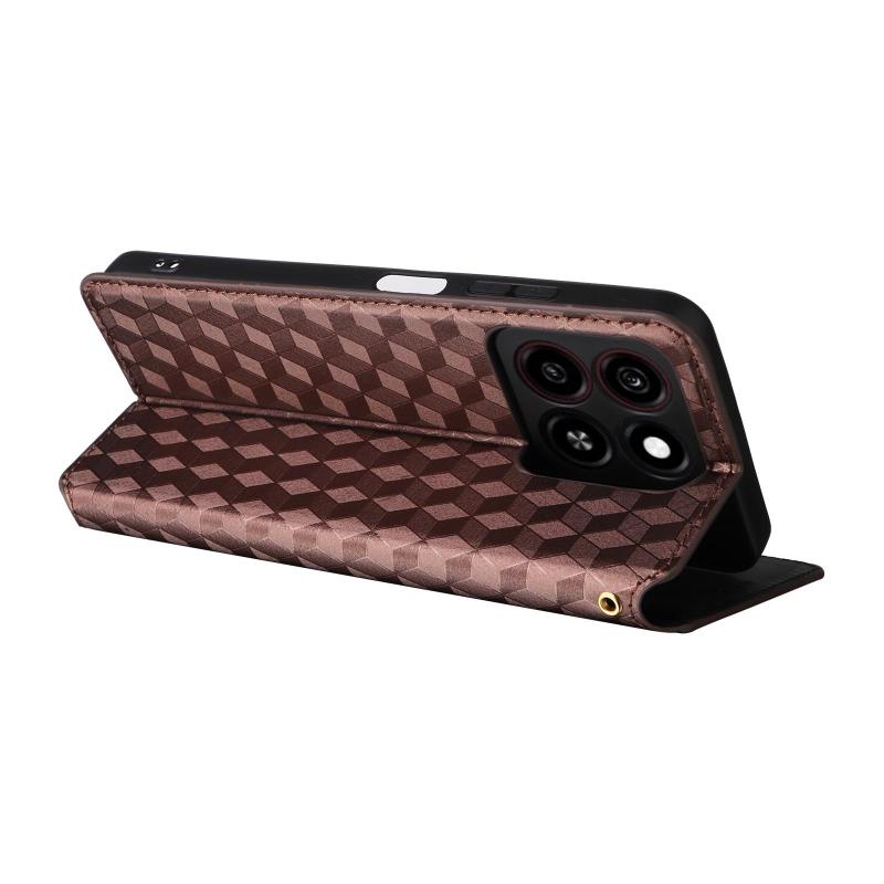For ZTE Blade A35 / A55 Cubic Grid Texture Flip Leather Phone Case(Brown)