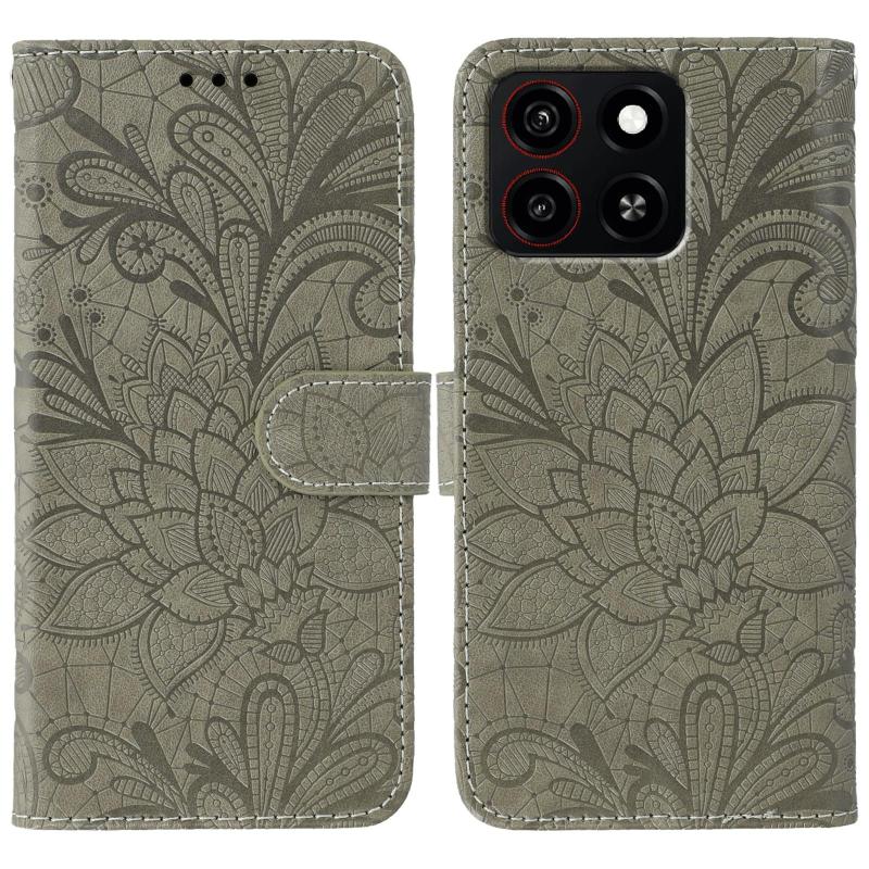 For ZTE Blade A35 Lace Flower Embossing Flip Leather Phone Case(Grey)