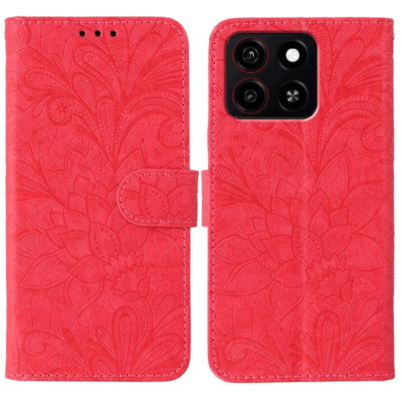 For ZTE Blade A35 Lace Flower Embossing Flip Leather Phone Case(Red)