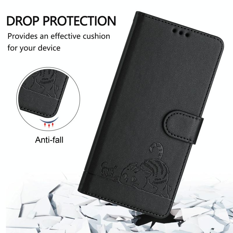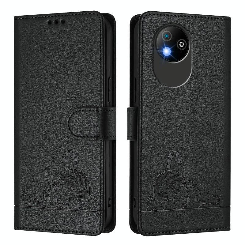 For ZTE Blade A35 Lite Cat Rat Embossed Pattern RFID Leather Phone Case with Lanyard(Black)