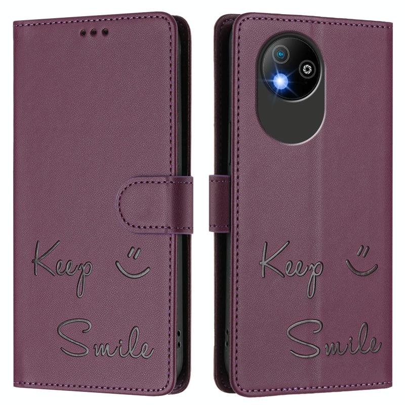 For ZTE Blade A35 Lite Smile Embossing RFID Leather Phone Case(Violet)