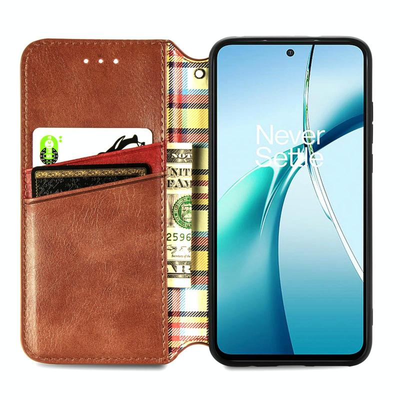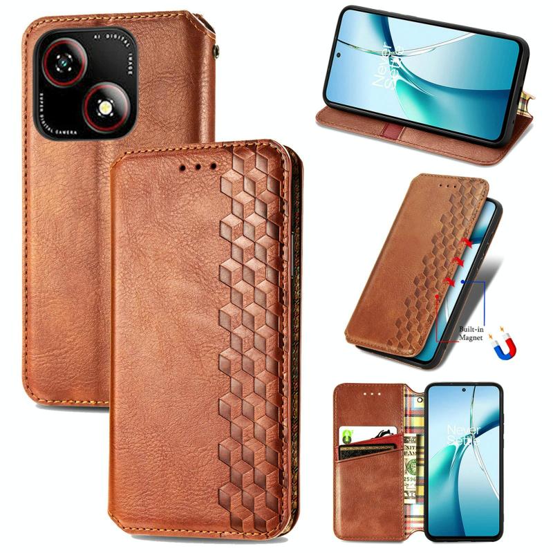 For ZTE Blade A35e 4G Cubic Grid Pressed Magnetic Leather Phone Case(Brown)