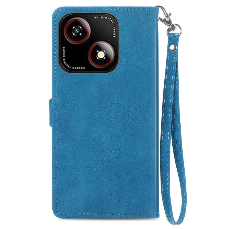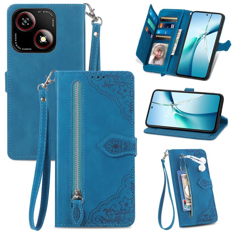 For ZTE Blade A35e 4G Embossed Flower Zipper Leather Phone Case(Blue)