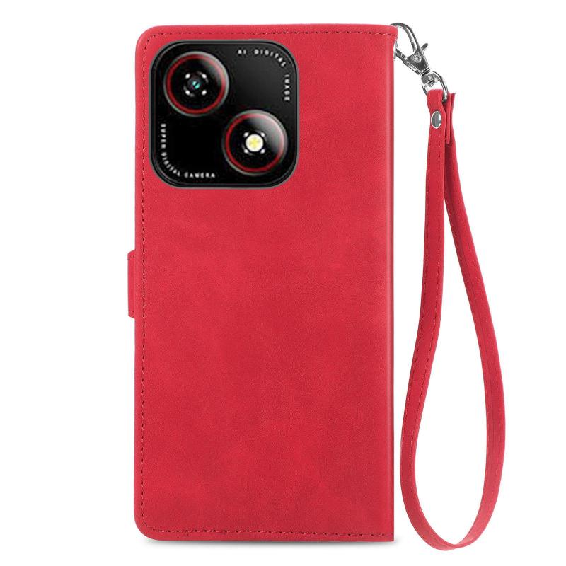 For ZTE Blade A35e 4G Embossed Flower Zipper Leather Phone Case(Red)