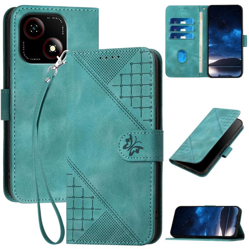 For ZTE Blade A35e 4G Grid Butterfly Embossed Pattern Leather Phone Case with Lanyard(Light Blue)