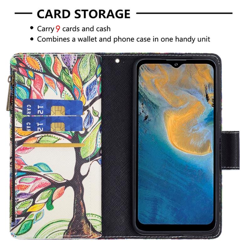 For ZTE Blade A51 Colored Drawing Pattern Zipper Leather Phone Case(Big Tree)