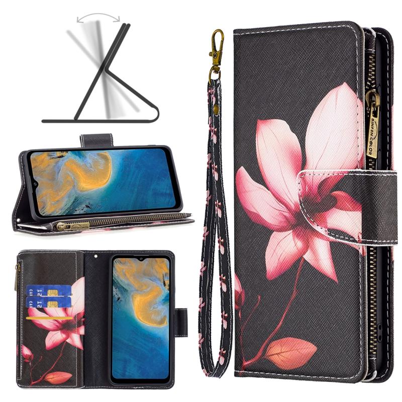 For ZTE Blade A51 Colored Drawing Pattern Zipper Leather Phone Case(Lotus)