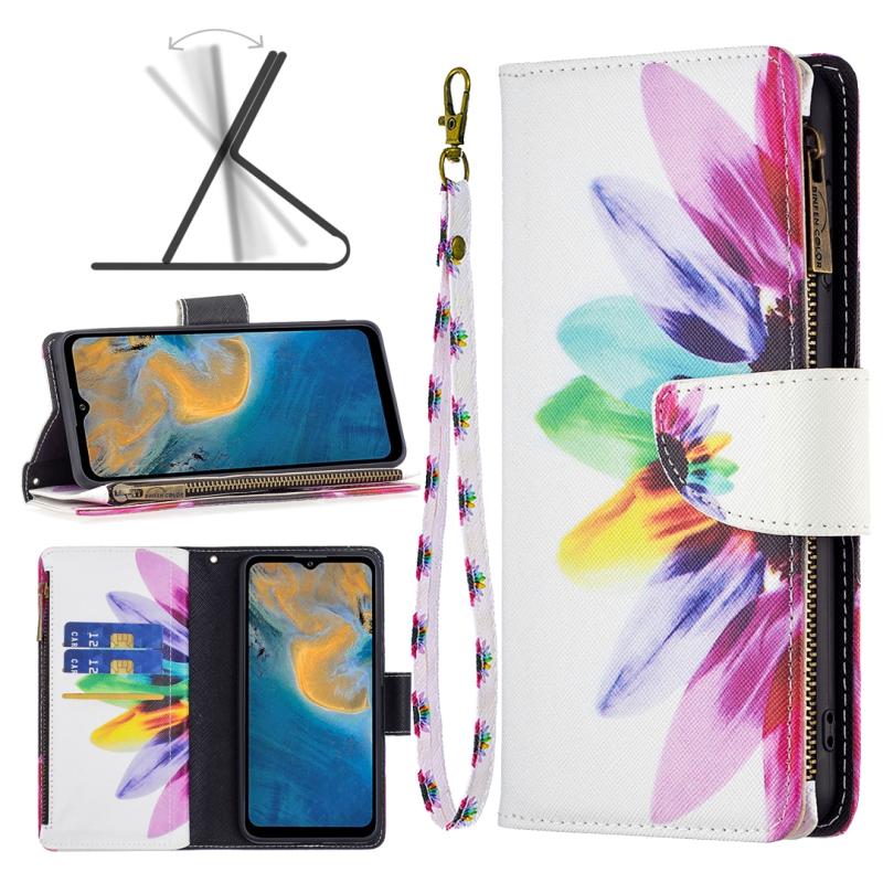 For ZTE Blade A51 Colored Drawing Pattern Zipper Leather Phone Case(Sun Flower)