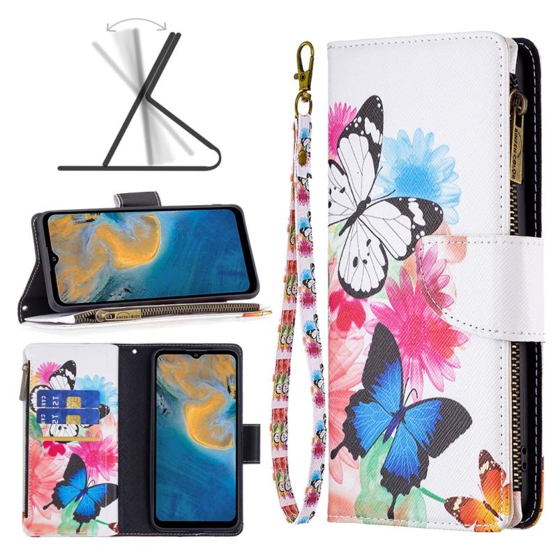 For ZTE Blade A51 Colored Drawing Pattern Zipper Leather Phone Case(Two Butterflies)