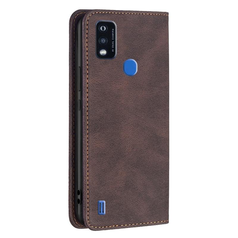 For ZTE Blade A51 Magnetic RFID Blocking Anti-Theft Leather Phone Case(Brown)