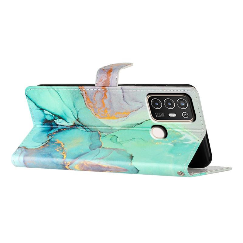 For ZTE Blade A52 Colored Drawing Leather Phone Case(Green Marble)
