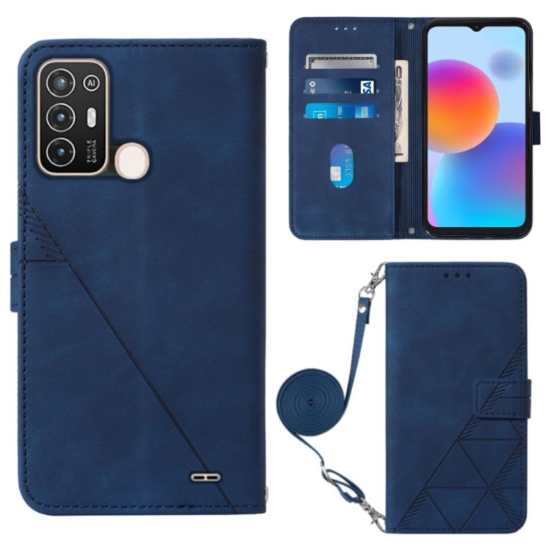 For ZTE Blade A52 Crossbody 3D Embossed Flip Leather Phone Case(Blue)