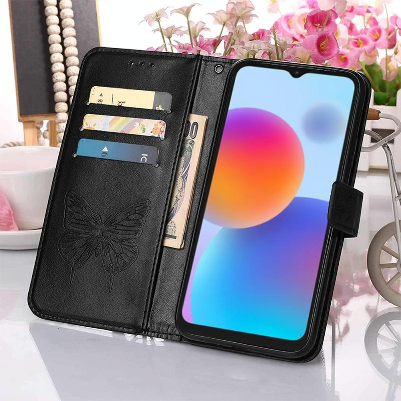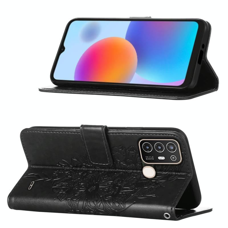 For ZTE Blade A52 Embossed Butterfly Flip Leather Phone Case(Black)