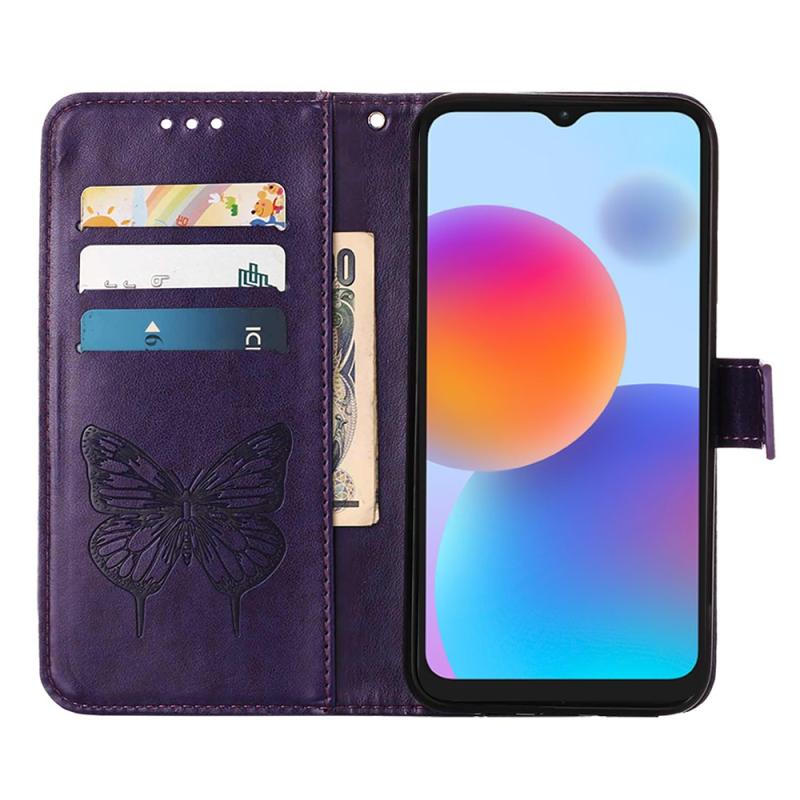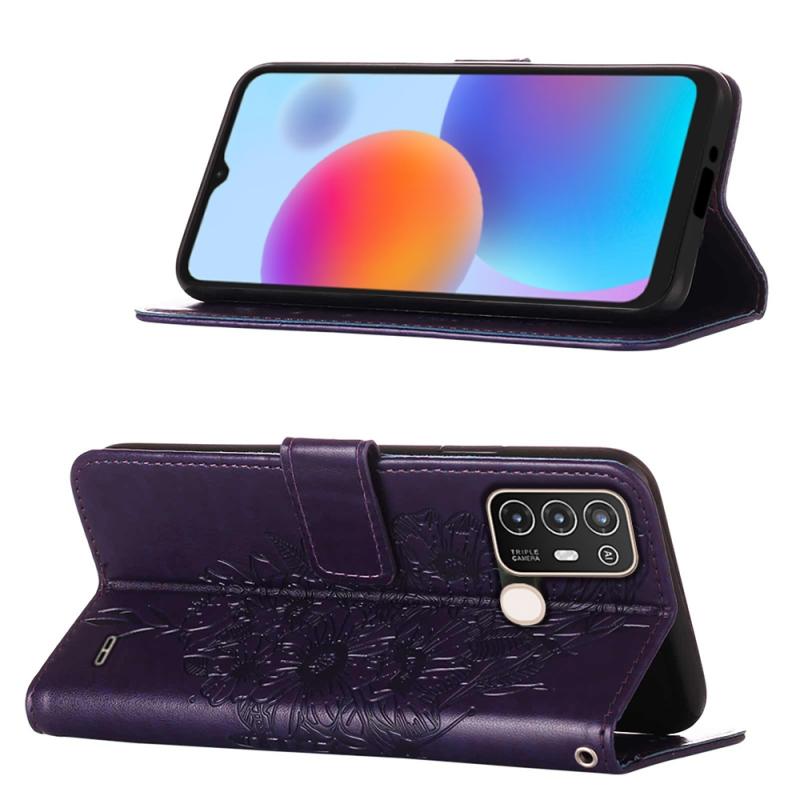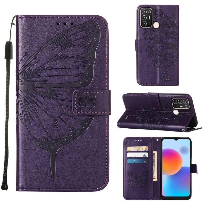 For ZTE Blade A52 Embossed Butterfly Flip Leather Phone Case(Dark Purple)