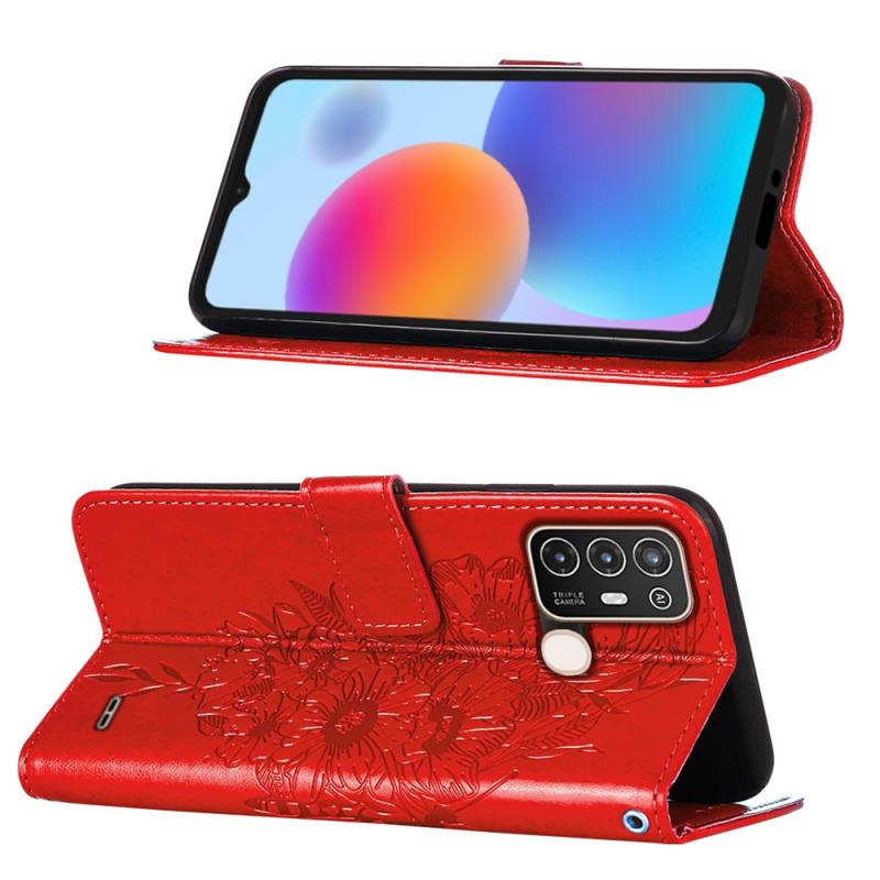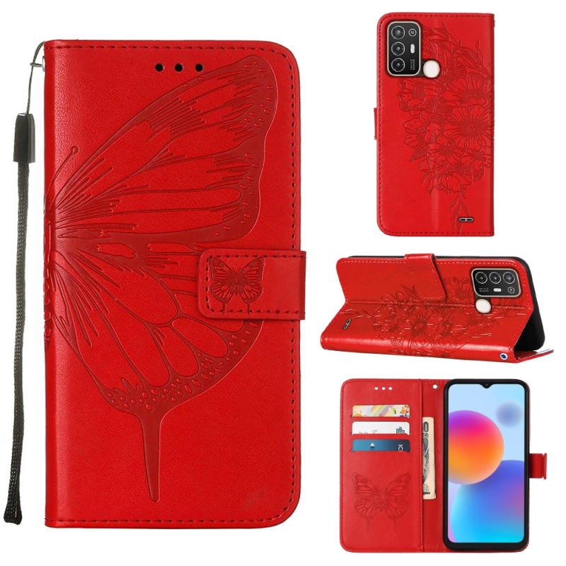 For ZTE Blade A52 Embossed Butterfly Flip Leather Phone Case(Red)