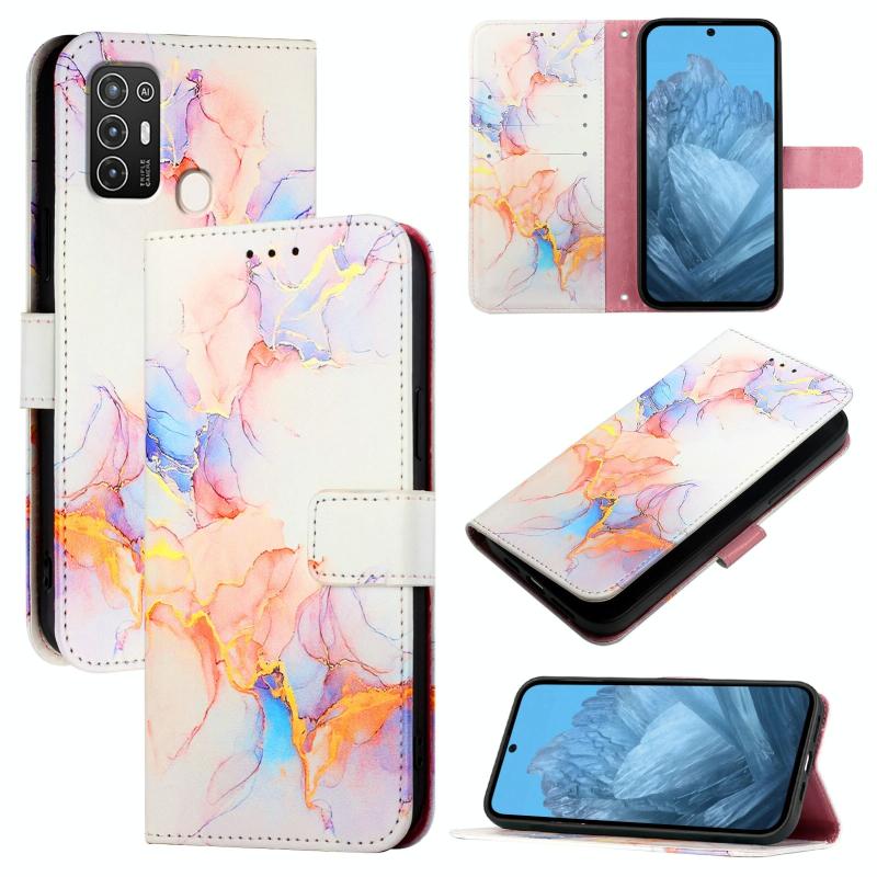 For ZTE Blade A52 PT003 Marble Pattern Flip Leather Phone Case(Galaxy Marble White)